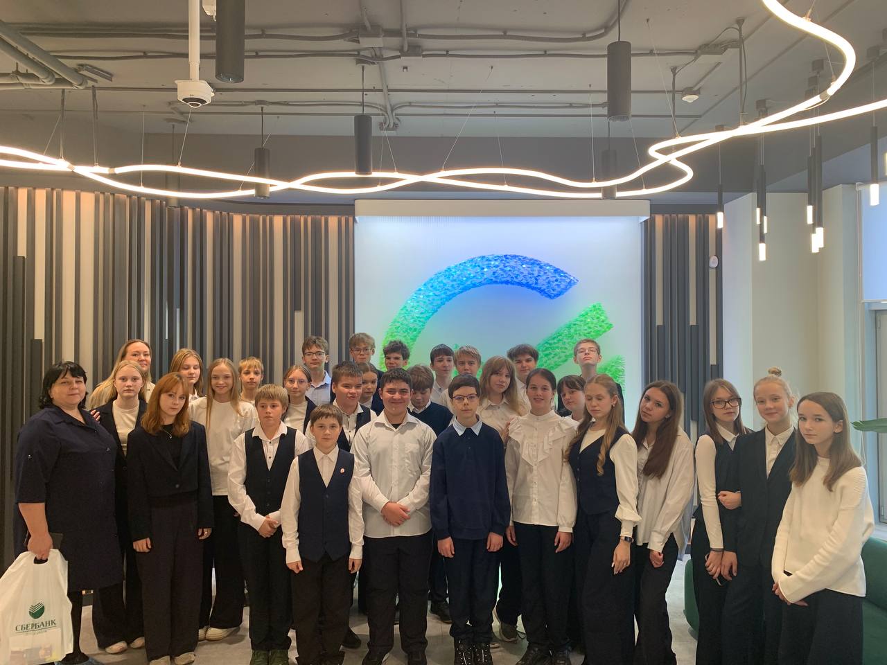 8 октября учащиеся 7В класса посетили офис СБЕР в бизнес-центре. Офис занимает четыре уровня и оформлен в стиле "открытого офиса" с переговорными комнатами, зонами отдыха и столовой. Пространство оборудовано панорамными окнами и оформлено с учетом истории области: Арктики, Поморья и достопримечательностей края. Для школьников провели урок "Урок цифры" по теме "Искусственный интеллект: промпт-инжиниринг", где они научились составлять запросы для генерации изображений. Ученики выражают благодарность руководителю отдела зарплатных проектов Архангельского отделения СБЕР Ирине Владимировне Совершаевой за экскурсию.