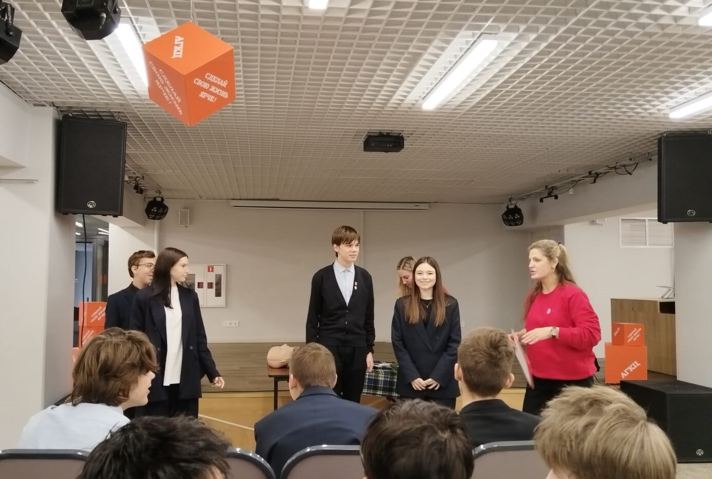 17 октября девятиклассники из 9В класса приняли участие в акции «Мысли позитивно», приуроченной ко Дню психического здоровья. В рамках этого мероприятия состоялась беседа о профилактике употребления психоактивных веществ. Психолог Анастасия Александровна Паламарчук из Архангельского регионального отделения «Российский Красный Крест» провела интерактивное занятие. Она рассказала о проблемах, связанных с ПАВ, объяснила причины и последствия их употребления. В игровой форме ученики учились отказываться от наркотиков и других психоактивных веществ.