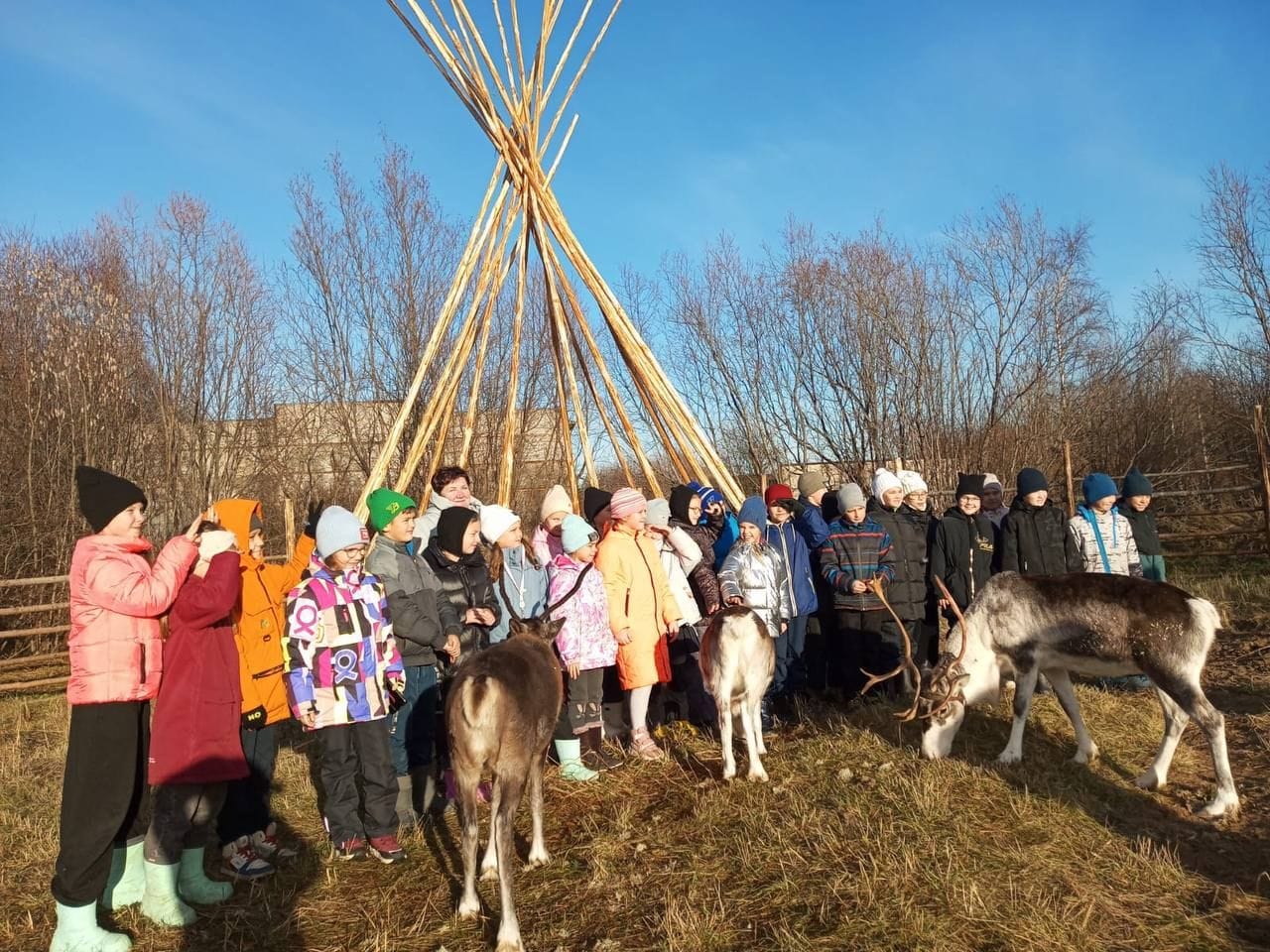 Необычный урок окружающего мира по теме " Животные Севера" прошёл у 3 в класса в новом парке - ферме " Северный олень". Ребята тактильно пообщались с оленями, покормили их любимым лакомством, ягелем , узнали о правилах кормленичэя. Оказывается, это не так просто. Нам рассказали о продолжительности жизни на воле и под уходом человека, чем питаются животные, особенностях взрослых особей и их детёнышей. Сколько весят рога. Для чего они им нужны. Каким образом они меняют их.Чем отличаются северные олени от сородичей средней полосы. Мы успели и покачаться на качелях, полюбоваться плавающими в проруби гуляли, и попить горячего чая, делясь впечатлениями. Занятие очень познавательное. Обязательно используем полученные знания при проведении занятий по Арктиковедению, посвящённых Дню Северного оленя.
