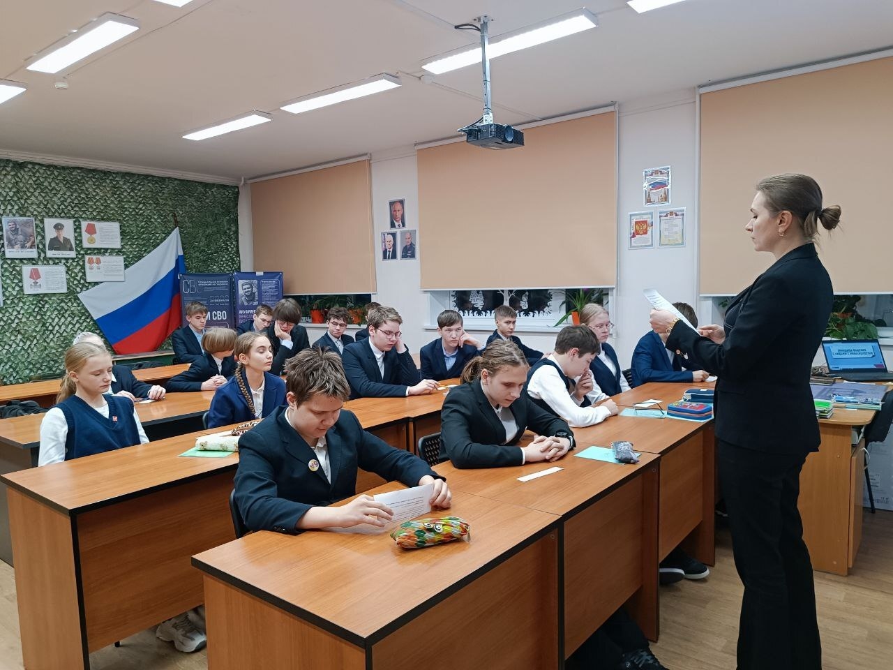 ПО СЛЕДАМ ПОДВИГА В честь Дня Неизвестного Солдата советник директора по воспитанию и учитель истории Олюкова Алёна Ивановна провели историческую игру «По следам подвига» для учеников 8Б класса. Ребята расшифровывали письма, собирали вещмешок, отвечали на вопросы о героях и битвах, оказывали первую помощь и угадывали военные песни. Каждое задание помогало им лучше понять войну. Такие мероприятия сохраняют память о прошлом.
