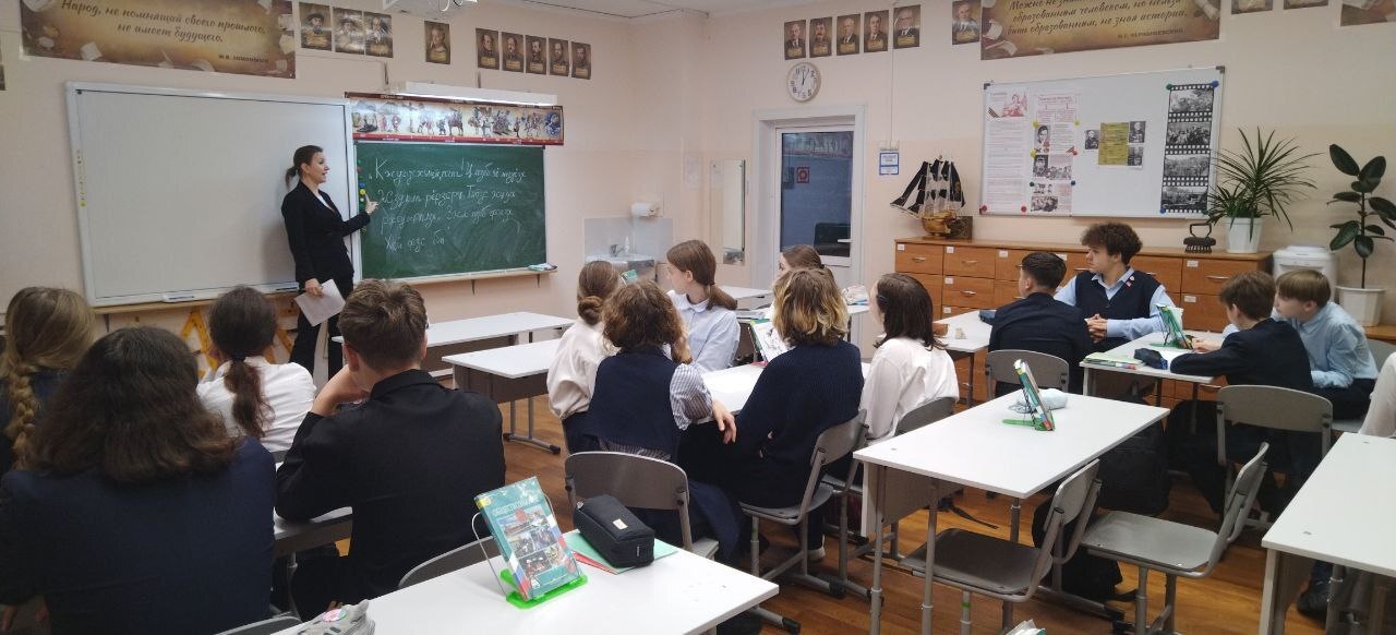 Советник по воспитанию Шевченко Е. В. провела урок для 5в и 5б классов. Ученики изучили дрейф судна "Георгий Седов" (1937–1940) под руководством Героя Советского Союза К. С. Бадигина. Ребята узнали маршрут, исследования на борту, опасности, расшифровали радиограмму и послушали голос капитана.