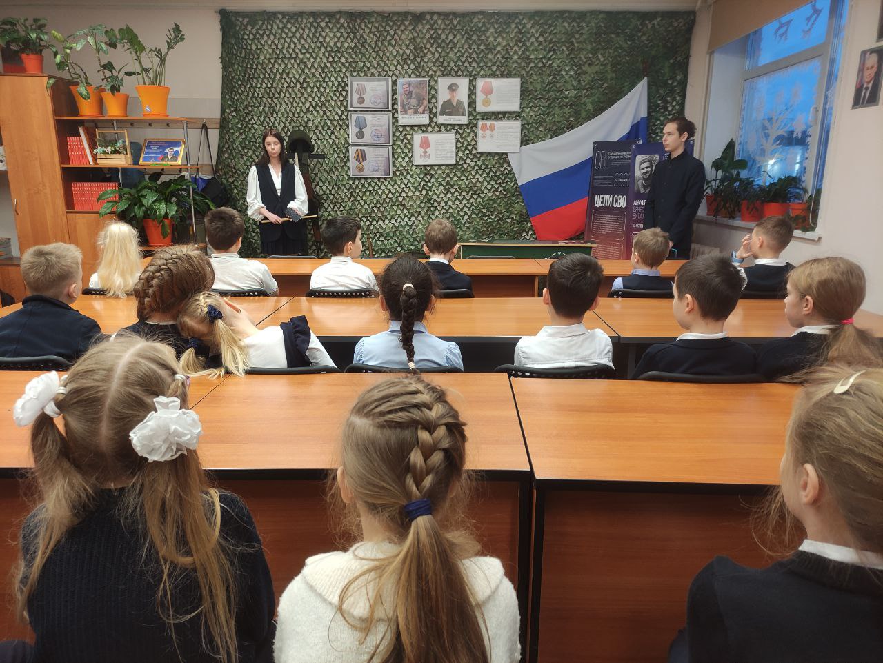 18 декабря учащиеся 2а класса побывали на экскурсии в кабинете ОБЗР, где девятиклассники рассказали о Героях нашей школы, о двух выпускниках, которые погибли на СВО, проявив мужество, героизм в защите нашей Родины - о Вячеславе Бурлака и Вячеславе Ануфриеве. Детям показали парту Героя, дали возможность рассмотреть военный арсенал современных солдат, а также разрешили примерить военную каску и подержать в руках макет автомата Калашникова. Такие мероприятия воспитывают патриотов свой Родины, формируют чувство гордости за героев - земляков. Спасибо большое старшеклассникам и Людмиле Андреевне!