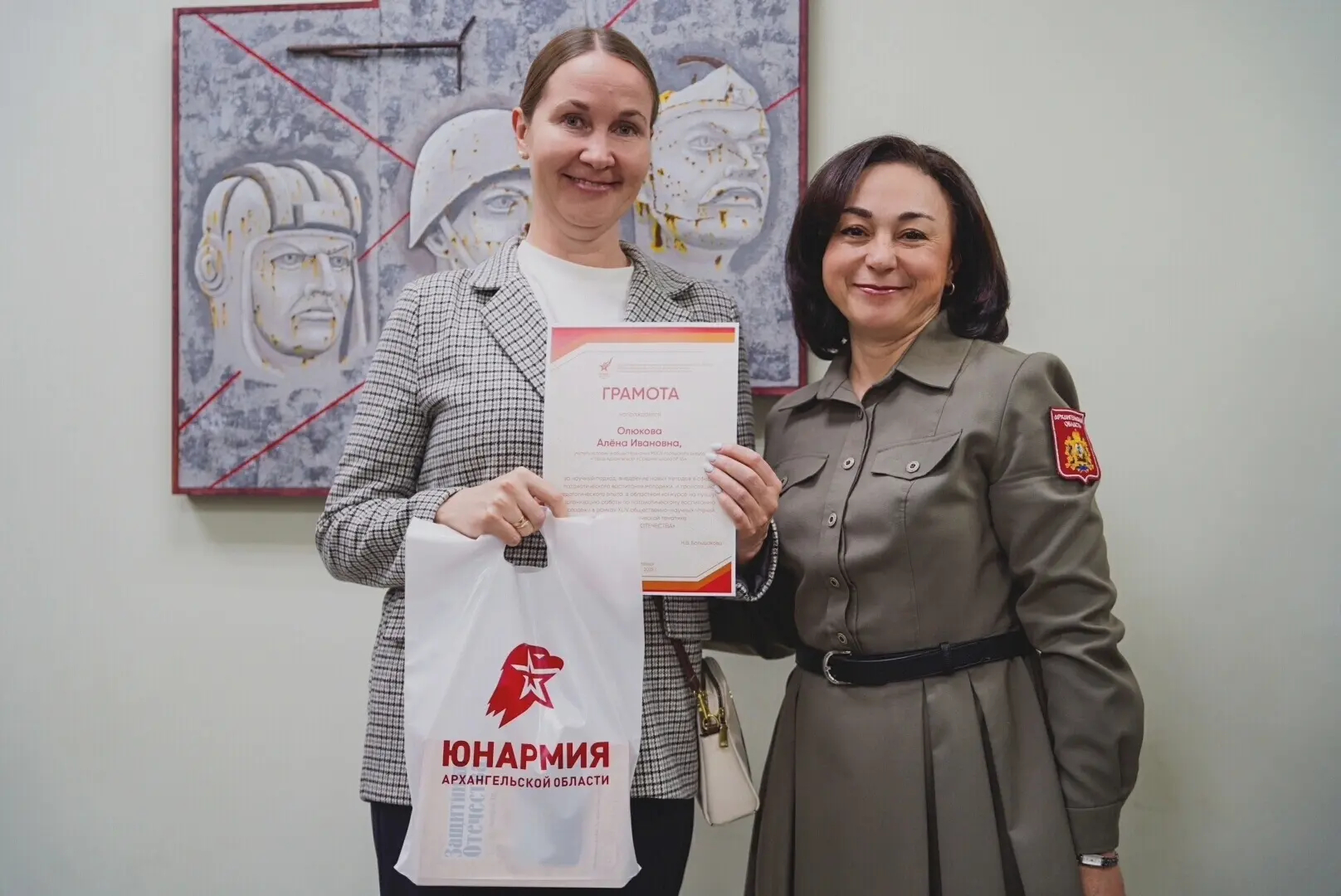 19 декабря центр "Патриот" провел встречу с художником Алексеем Зашихиным для победителей областного конкурса на лучшую работу по патриотическому воспитанию. В музее "Блиндаж Победы" обсуждалась картина с художником. Встреча также стала поводом вручить награды педагогам и творческим людям за вклад в патриотическое воспитание в Архангельской области. Наша школа получила грамоту за научный подход и внедрение новых методов патриотического воспитания. На конкурсе был представлен опыт школы по сохранению памяти о выпускниках-Героях СВО, погибших Вячеславе Ануфриеве и Вячеславе Бурлаке.