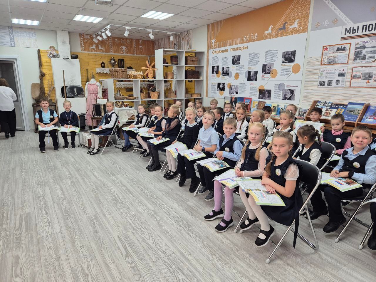 Ученики 1 «А» класса посетили школьный музей «Вот она какая, дорогая Родина моя», посвящённый истории Архангельской области. Они узнали о создании музея и его экспонатах, а также представили проект «Памятные места Архангельска». Каждый рассказал о любимых местах города, подготовив рисунки и рассказы. Такие встречи помогают детям лучше узнать родную культуру и историю.