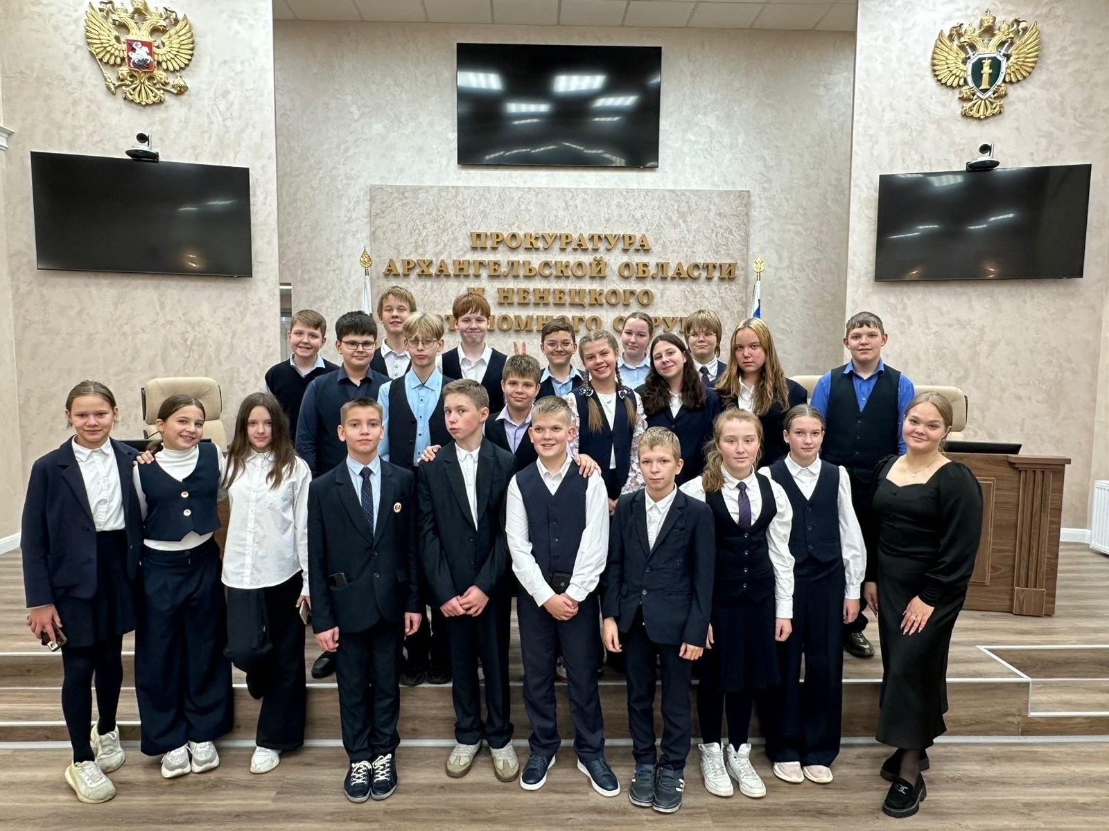 19 сентября ученики 6 «А» класса посетили прокуратуру. Прокурор Архангельской области и Ненецкого автономного округа Николай Николаевич Хлустиков провел экскурсию по музею, рассказал об истории прокуратуры, системе работы и направлениях деятельности, ответил на вопросы детей. Затем они посетили актовый зал и кабинет старшего помощника прокурора по взаимодействию со СМИ Бубновской Юлии Владимировны. Экскурсия произвела хорошее впечатление, и некоторые ребята задумались о выборе профессии.