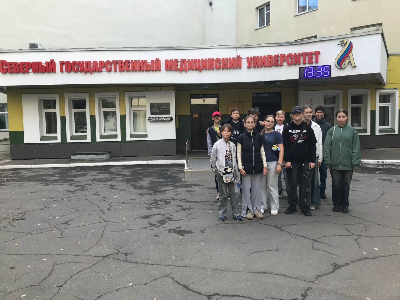 Учащиеся 10 классов приняли участие в Дне открытых дверей Северного Государственного Медицинского университета 20 сентября 2025 года в рамках проектов "Россия - мои горизонты" и "Билет в будущее". Н.А. Былова, и. о. ректора СГМУ, призвала сделать осознанный выбор в пользу медицины. Студент 5 курса Антон Васильев рассказал о внеучебной деятельности и кружках. Школьники общались с представителями СГМУ, участвовали в мастер-классах и экскурсиях, а также получили консультации от приёмной комиссии. Выпускник 2013 года Никита Джос Н.П., студент Первого медуниверситета Санкт-Петербурга, поделился опытом обучения в НГУ имени Лесгафта. Такие встречи помогают учащимся осознанно подойти к выбору профессии и готовиться к ЕГЭ уже в старших классах.