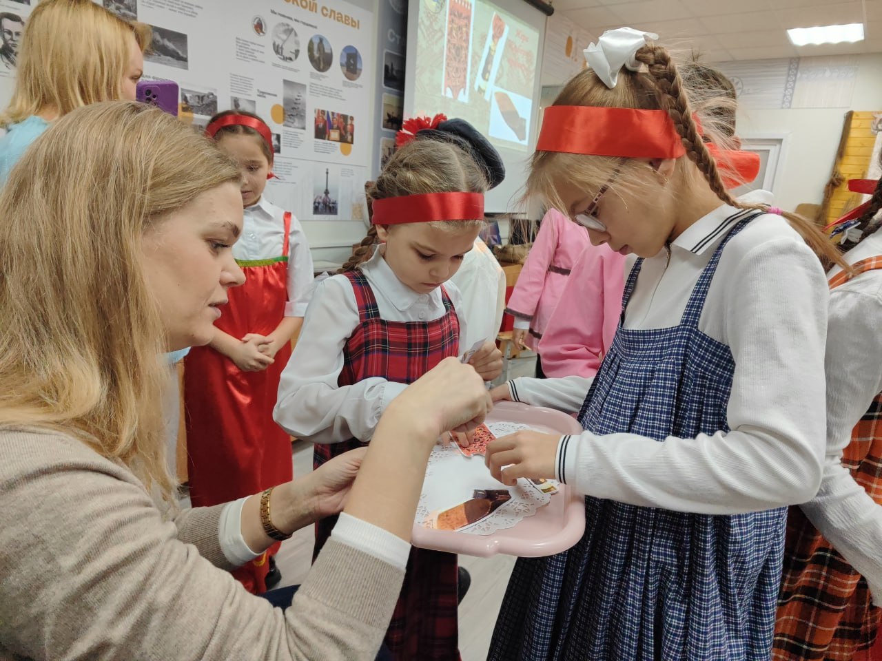 Ученики 3В класса провели для мам и бабушек интерактивное занятие "Я пряду, пряду кудель" в рамках проекта "Нить времён" и программы "Хранители истории". Ребята рассказывали о прялке и прядении, отгадывали загадки, выполняли задания в группах, а бабушки показали, как пользоваться веретеном и провели мастер-класс по прядению. Занятие завершилось хороводом "Клубок". Все остались довольны.