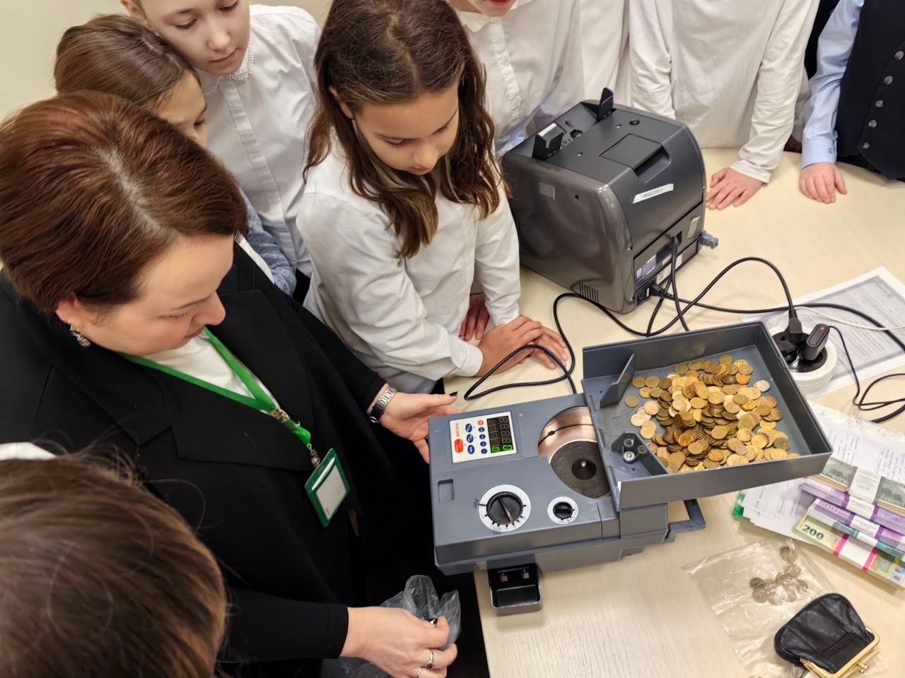 5г класс посетил отделение Россельхозбанка. Им показали счетные машины для купюр и монет, объяснили, как выбраковываются монеты и как отличить поддельную купюру. Особое внимание уделили знакам отличия подлинности. Рассказали о защите кассы от взрывов и пожаров. Объяснили важность планирования расходов и ведения бюджета. Ребята получили подарки и остались довольны.