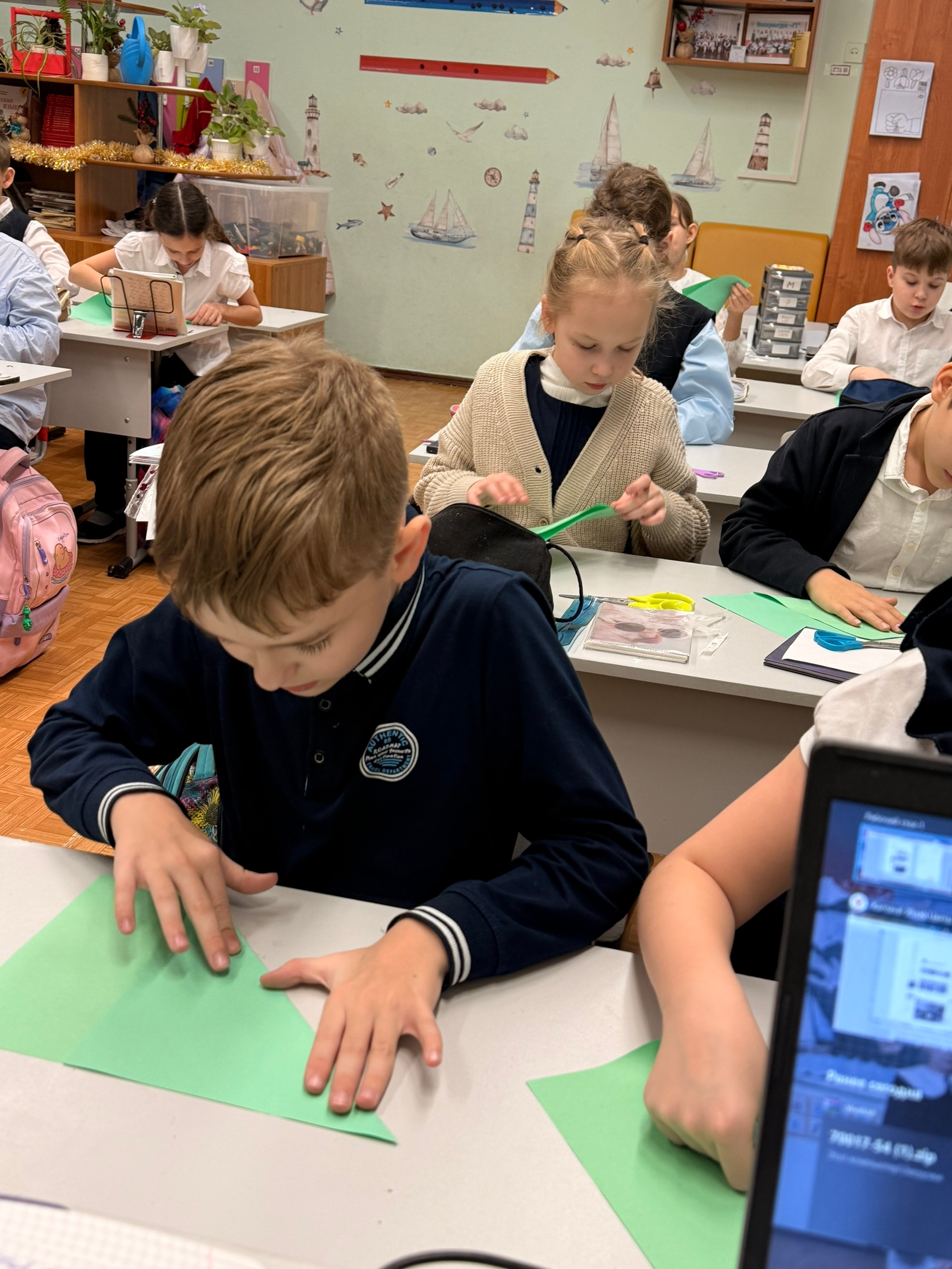 11 декабря наставники проекта «Орлята России» провели занятие по треку «Орлёнок-мастер» для 3 г класса. Ребята учились работать с бумагой, осваивали новые приёмы и делились идеями. Каждый сделал новогоднюю ёлочку, что подарило настроение и чувство гордости. Такие занятия развивают усидчивость, аккуратность и фантазию. Спасибо наставникам за вдохновение!