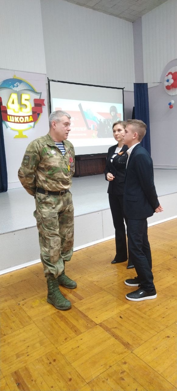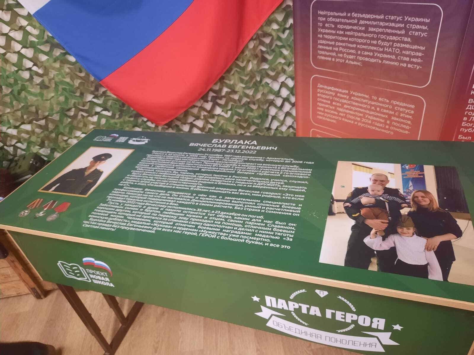 9 декабря, в День Героев Отечества, ученики 9б и 3в классов продолжили разговор о великих подвигах, начатый на классном часе "Россия - страна победителей". Обсудили Героев нашей школы, Вячеслава Бурлака и Вячеслава Ануфриева, погибших на СВО. Показали парту Героя и военный арсенал. Такие занятия формируют гордость за Родину и героев.
