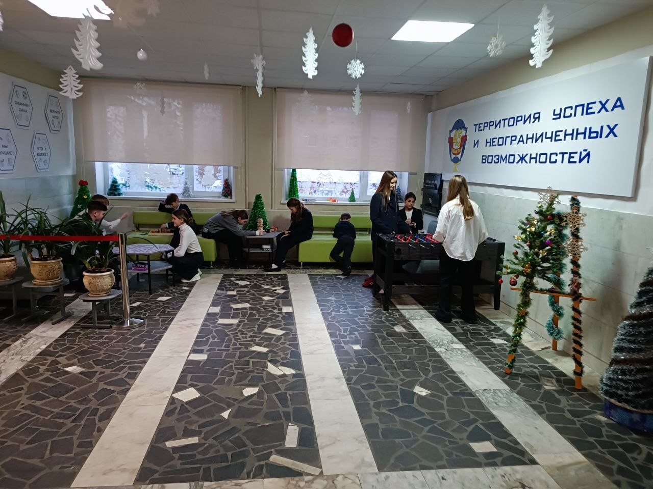 «Место Перезагрузки» стало сердцем школы, привлекая учеников всех возрастов. Здесь есть всё для отдыха, занятий и ярких эмоций: настольные игры, уютные диванчики, настольный футбол и зона для творческих выставок с подсветкой. Зона быстро завоевала популярность. На переменах здесь кипит жизнь, а после уроков собираются ученики внеурочной деятельности. Приходите заряжаться настроением, находить друзей и создавать школьные традиции!