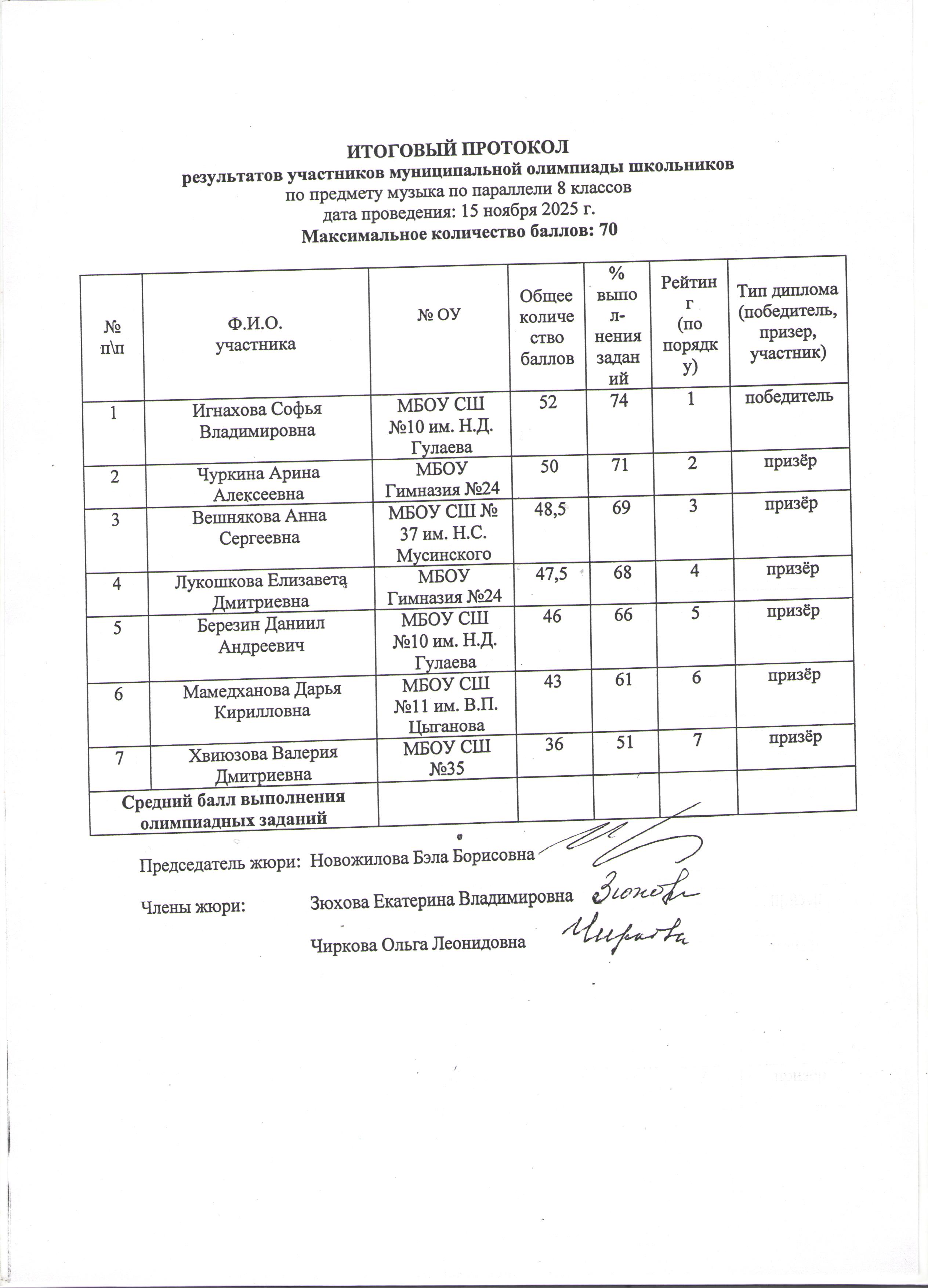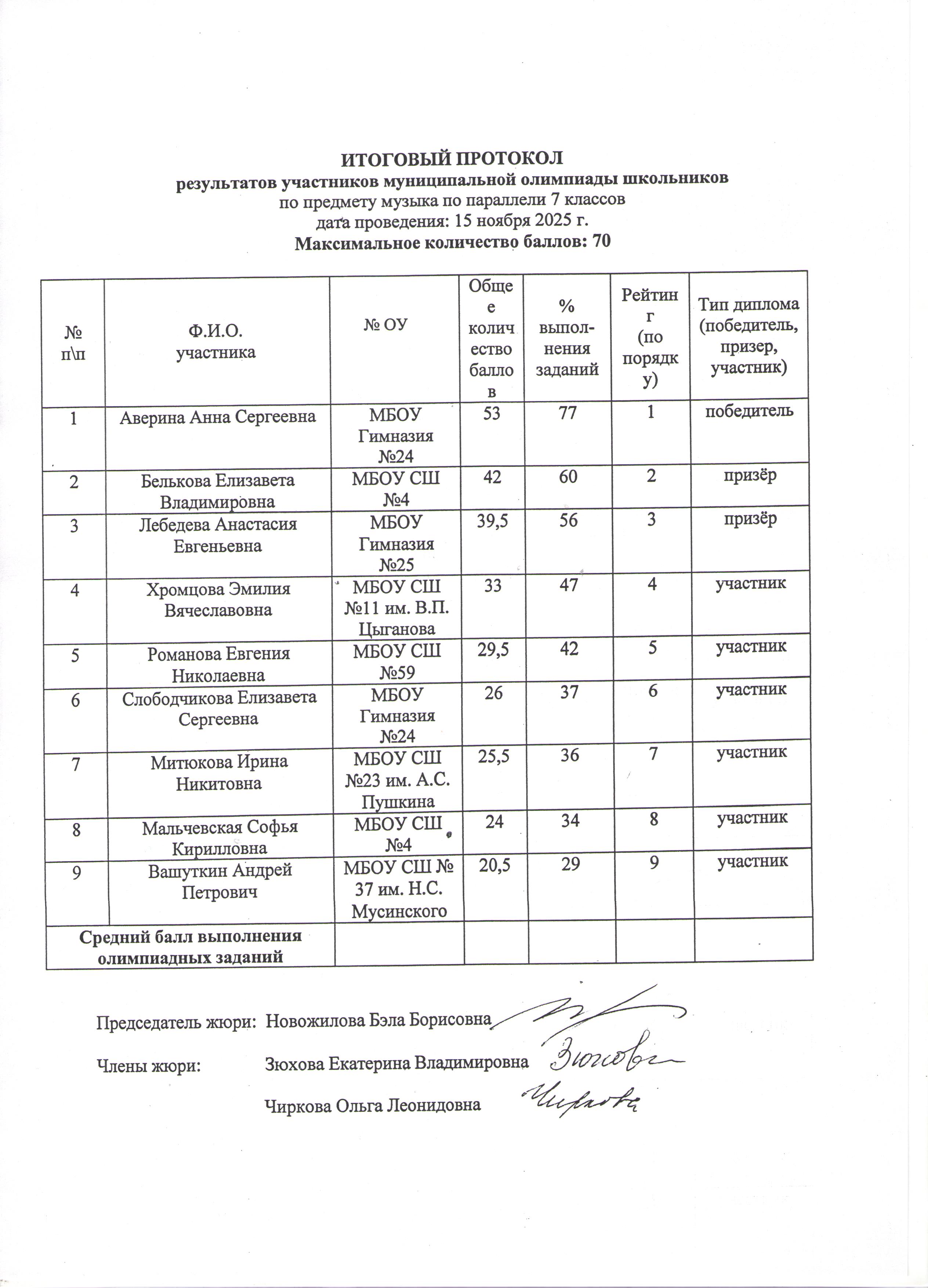 Результаты городской олимпиады по музыке 15 ноября 2025 года: