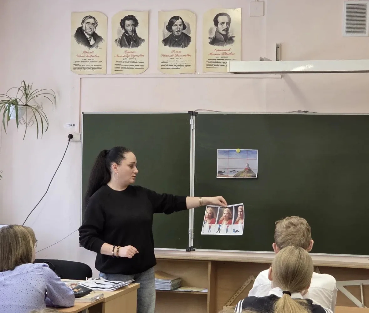 Увлекательный урок для обучающихся 7 б класса провела профессиональный фотограф Елена Дмитриева. Елена Евгеньевна рассказала ребятам о самых разных жанрах фотографии: о портрете и пейзаже, репортаже и предметной съёмке. Ученики узнали о том, что важно не только владеть техникой съёмки, но и уметь видеть необычное в обыденном, ловить момент и передавать настроение через кадр. Особое внимание было уделено тому, как сделать красивый снимок на телефон: какие ракурсы выбирать, как работать со светом и композицией. Елена Евгеньевна поделилась секретами мобильной фотографии и показала свои творческие проекты. Урок получился не только познавательным, но и очень вдохновляющим! Теперь многие семиклассники смотрят на мир через объектив — и, возможно, кто-то из ребят свяжет свою профессию с фотографией.