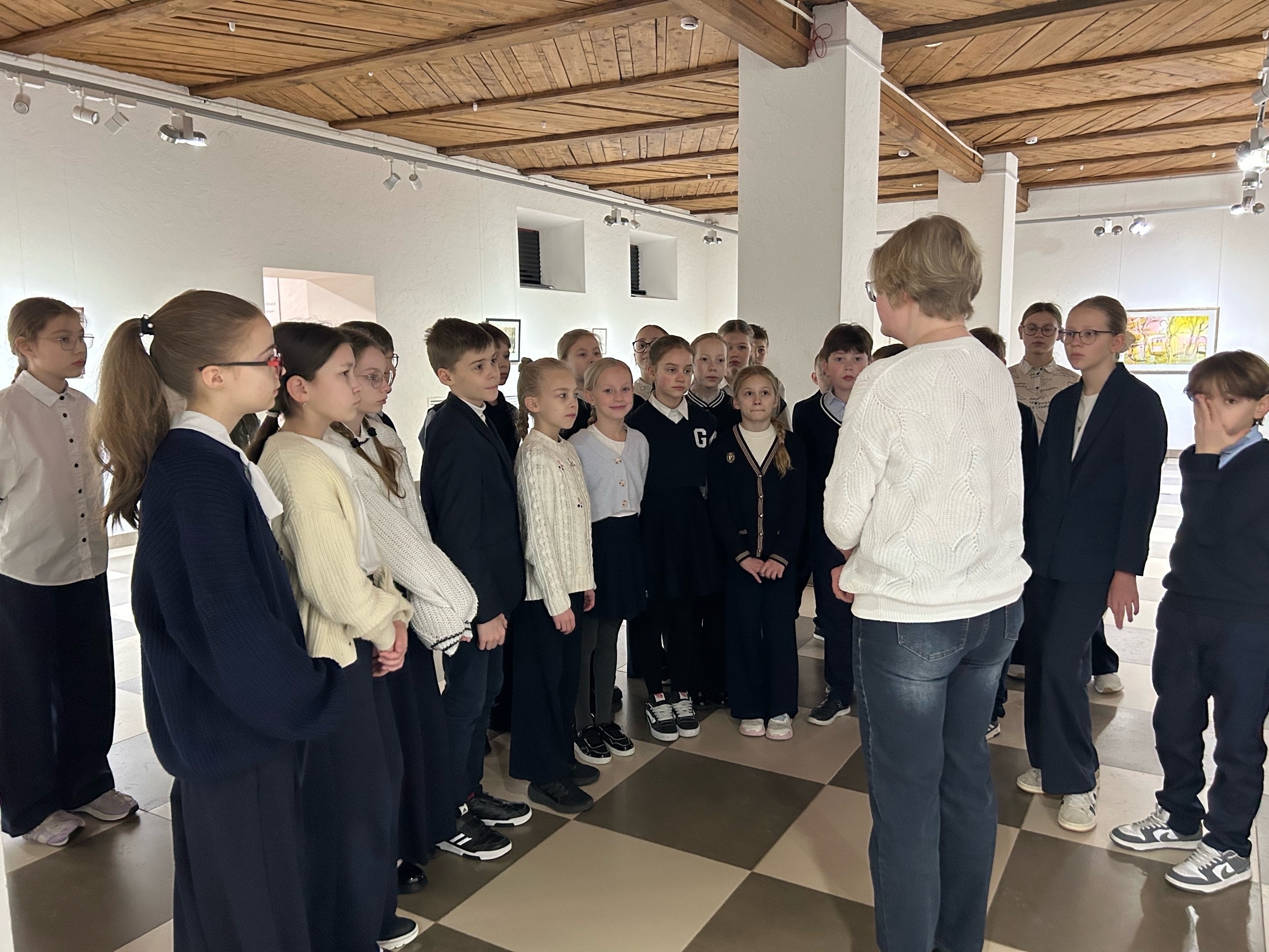 На прошлой неделе 4 «Б» класс посетил Музей художественного освоения Арктики им. А. А. Борисова. Дети отметили его манеру письма: северные пейзажи выполнены в основном в белых и серых тонах, передающих заснеженные просторы и ледяные глыбы. Особое впечатление произвела картина длиной 3 метра, которую они долго рассматривали. Экскурсия также включала спуск по лестнице XVIII века, что сделало поездку яркой и познавательной.